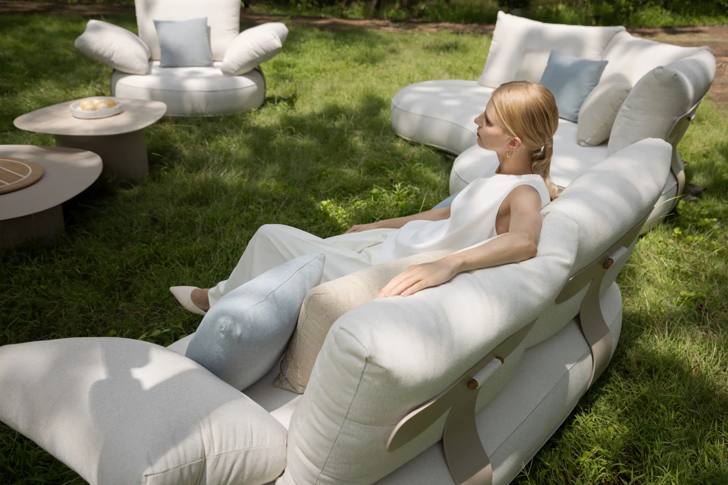 Each piece in the CALLA Collection features graceful, flowing lines that allow it to stand alone as an island of relaxation or combine seamlessly with others to form an intimate atoll. Whether you choose a solitary lounge spot or a connected landscape arrangement, CALLA creates a serene environment where you can unwind, disconnect, and soak in nature’s calming rhythms.