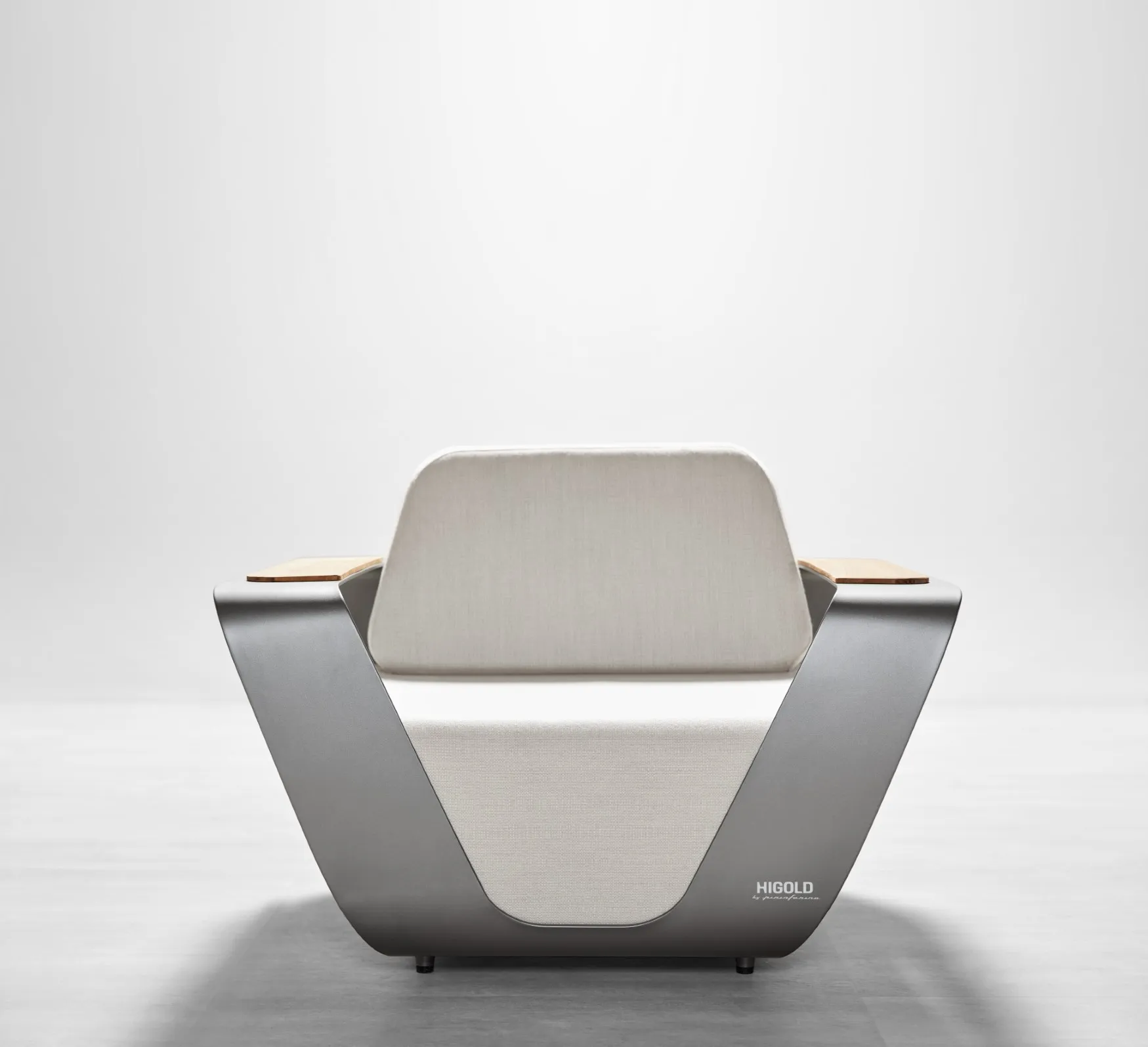 Characterised by fluid lines – as the ones of the wave – the band beyond being an aesthetic element becomes also a functional element, a rigid armrest that can be used to lean objects. The choice of the materials come from the Pininfarina 360° design experience: the aluminum – coming from the car sector – for the structure, the fabrics – used in the yachts for its resistance – for the cushions. The collection is composed by patio sectional, and a outdoor coffee table which offers multiple options to consumers.