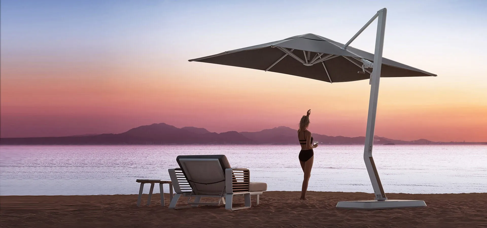 WING Outdoor Umbrella, cantilever with sunbrella fabric.
